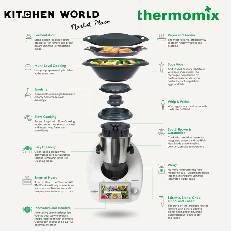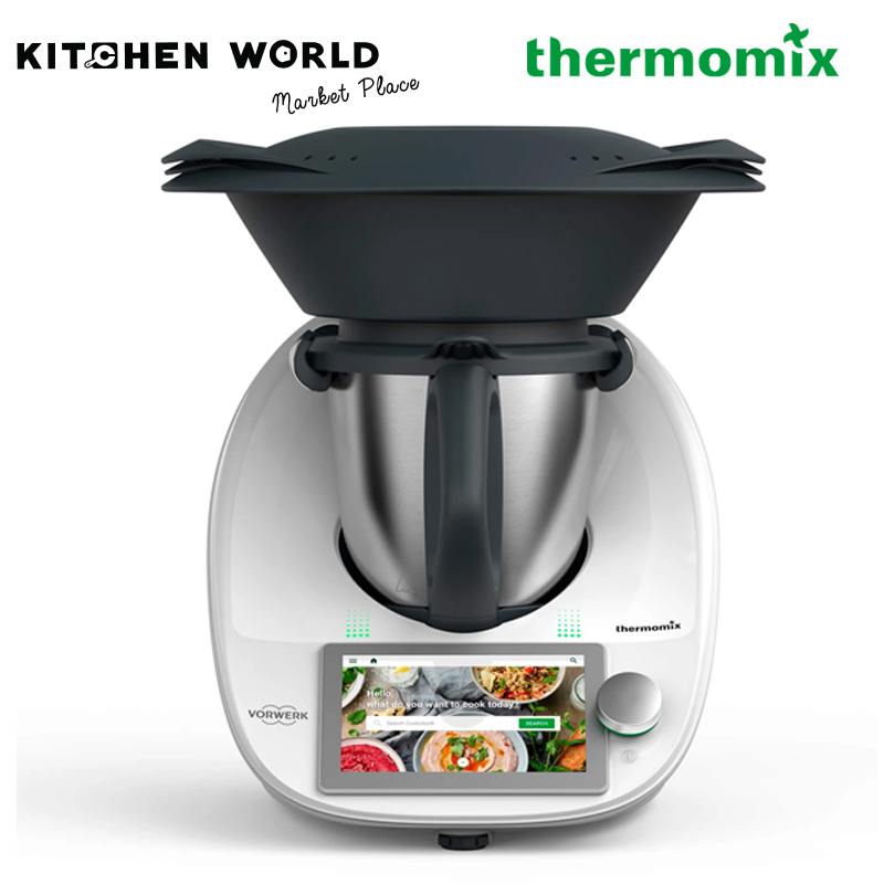 The Thermomix® Spatula is perfectly shaped to fit between the blades and the wall of the mixing bowl. A smart design and multiple uses make this an essential component of the Thermomix TM6®. The hook on the edge is essential for easily (and safely) removing the simmering basket out of the mixing bowl. The good news is, the new TM6® spatula is perfect for use in the TM5. Compared to its predecessor, the spatula of the Thermomix ® TM6® is a bit longer and grippier, with a flexible tip. So now food such as dough, creams or ice can be more easily removed from the bowl.